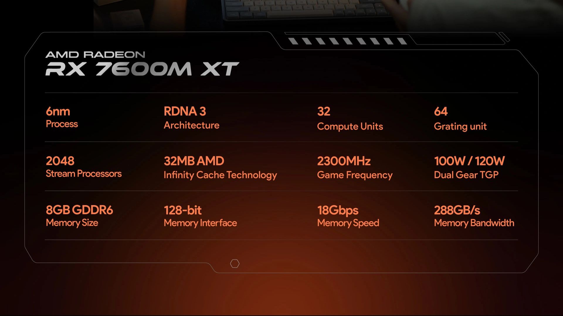 GPUAMD Radeon RX 7600M XT, 32 XE, 2300Mhz