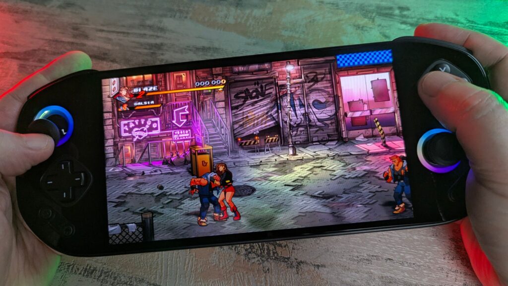 The front all-glass panel gives the handheld a premium look and feel. Handling is generally good, but I did find reaching the D-pad a little awkward when moving my thumb down from the analogue sticks. It is only a minor issue, and likely something that becomes easier with muscle memory over time.