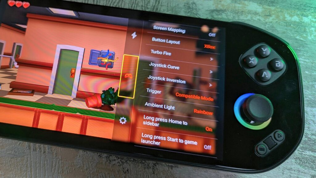 Inside the Android settings is a dedicated handheld settings section, which allows you to configure the joysticks, macro buttons, LED lighting, video output options, and device updates. Everything you need is covered here.