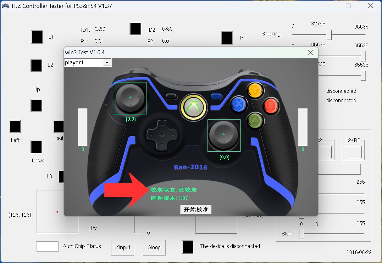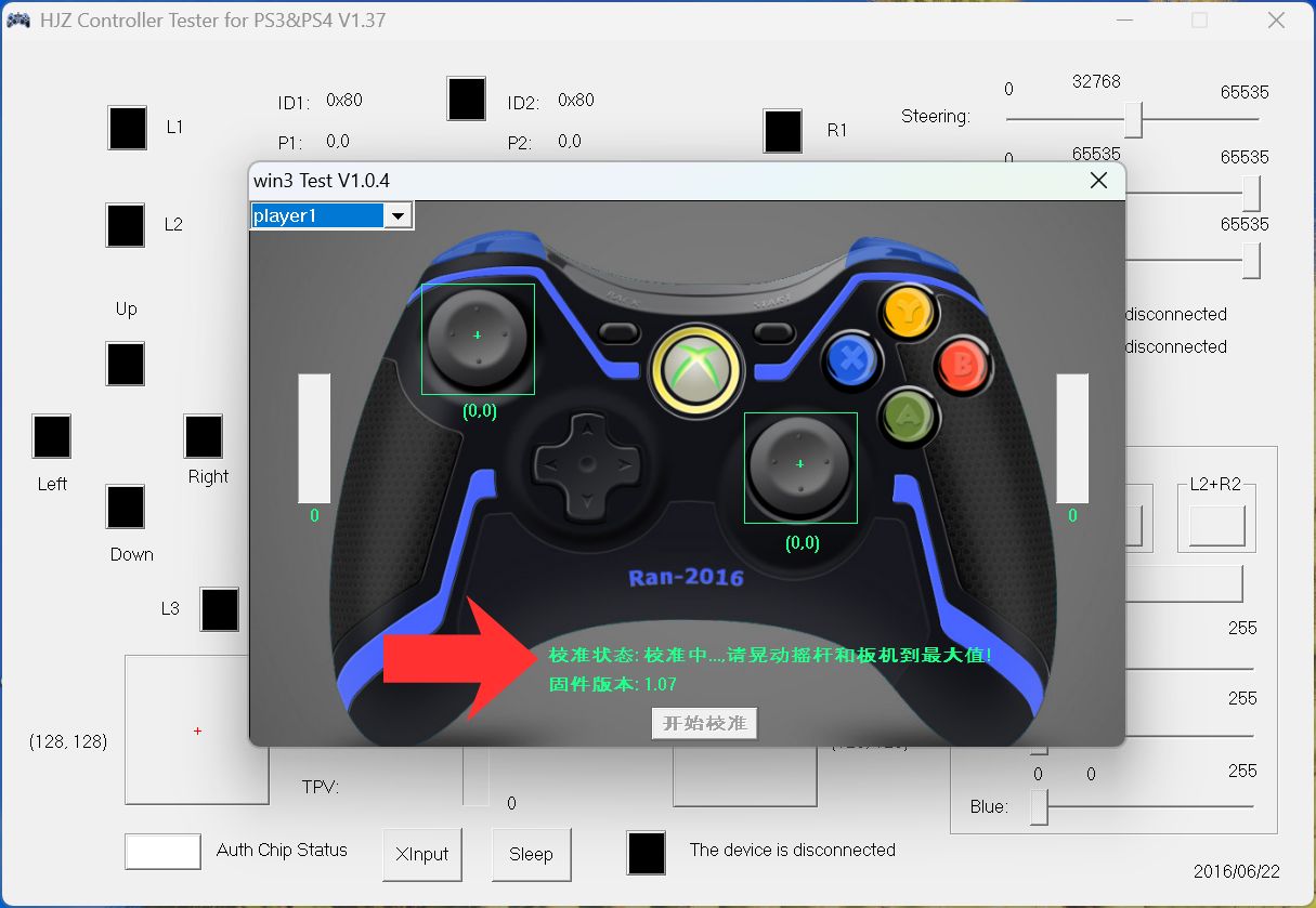 If you feel that you didnt fully push the edges or the triggers, you can press the button and repeat the calibration. You can also test the calibration has worked by pressing any of the analogue sticks or triggers and the values will appear in their respective areas.