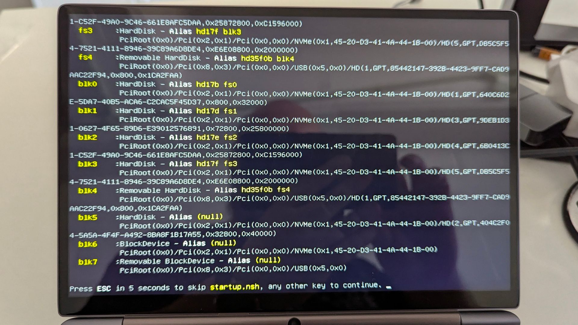 Power on the GPD WIN MAX 2 2025 and repeatedly press the F7 key on the keyboard. After a few moments the boot menu will appear. Press the Down arrow key on the keyboard and select the USB drive, then press ENTER.