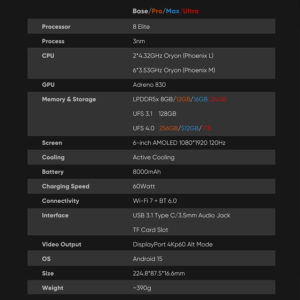 - Storage: Up To 256GB UFS4.0