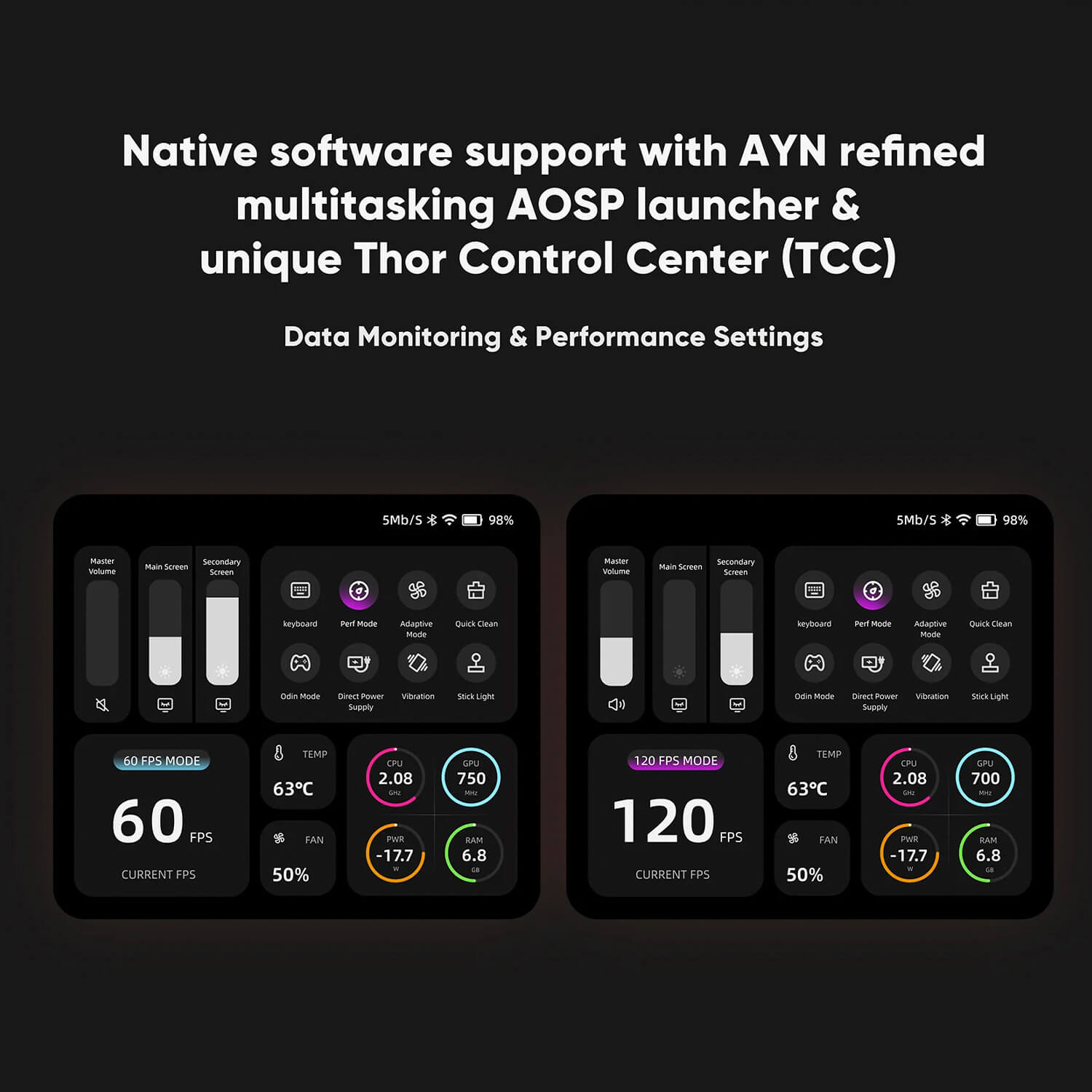 Whether you choose the capable Snapdragon 865 or the flagship Snapdragon 8 Gen 2, every Thor is built for sustained performance. To maintain peak speeds during marathon sessions, the Thor integrates a sophisticated active cooling system within its sleek frame, guaranteeing a cool, stable, and throttle-free experience that lets you push your games to the limit.