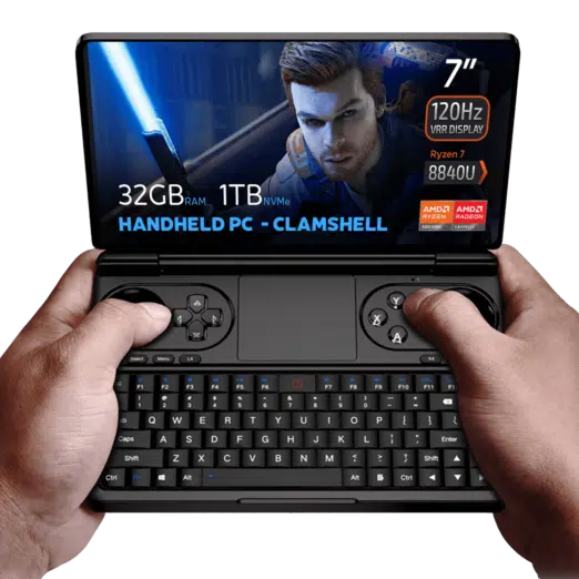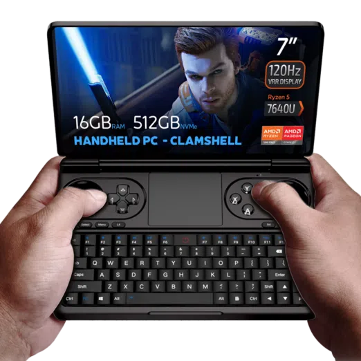 A compact, clam-shell handheld gaming console and mini-PC. Its sleek, foldable design protects the screen and keyboard when closed, offering portability and powerful performance. With a high-resolution display, responsive controls, and a full QWERTY keyboard, it provides an ergonomic experience for gaming and productivity tasks. Powered by the latest hardware, the GPD Win Mini 2024 aims to deliver seamless performance for gamers and tech enthusiasts on the go.