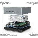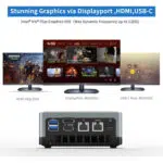 Memory and Storage: The U820 comes with 32GB of DDR4 SO-DIMM RAM, operating at 3200 MT/s, ensuring smooth multitasking and rapid data access. Its 1TB NVMe PCI-E Gen 4.0 SSD offers fast read and write speeds, significantly reducing load times and enhancing overall system responsiveness. Additionally, it supports storage expansion with two 2.5″ HDD/SSD SATA slots, allowing you to further increase storage capacity as needed.