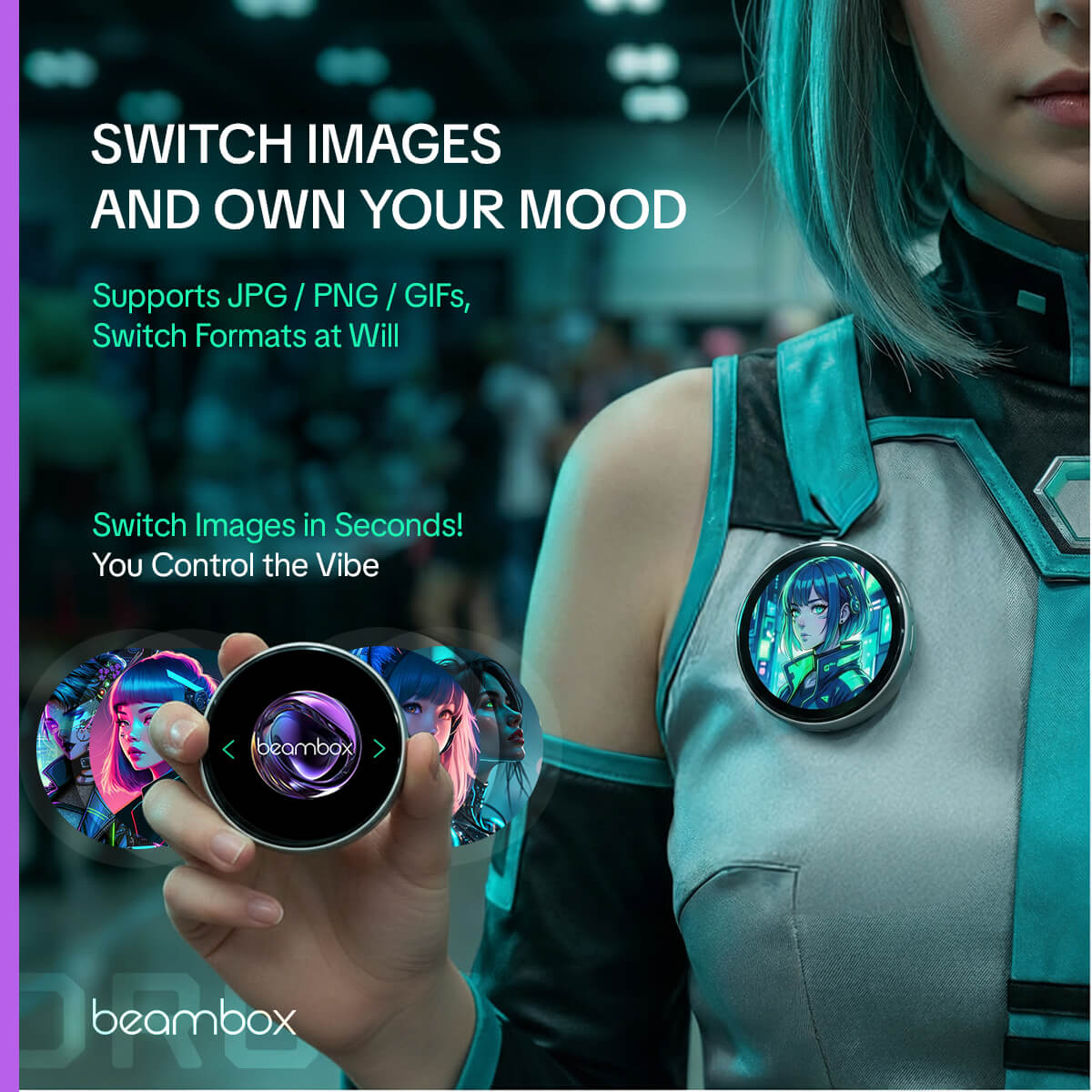 - Fast Connection: Connects instantly to the dedicated “Beambox” APP via Bluetooth V5.4 for ultra-fast content transmission and real-time updates.