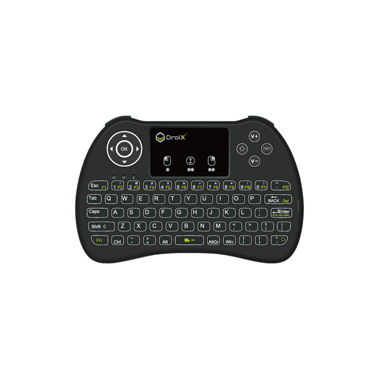 With a truly innovative shape, highly portable and elegant, the DroiX i9 remote is compatible with a range of devices including Android devices, PC, Raspberry PI, TV Box, PS3, HTPC/IPTV and more.