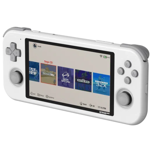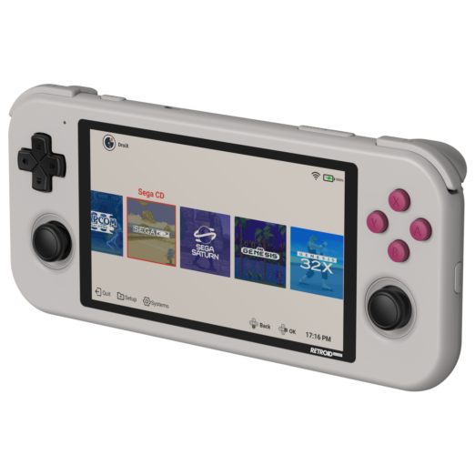 The Retroid Pocket 3 is very portable at only 7.2 x 3.1 x 0.9 inches (18.4 x 8.1 x 2.4 cm) and lightweight at 240g, it can easily fit into a jacket pocket or small bag. The 4.7” touchscreen is an upgrade from the previous model and looks bright and vibrant. The retro gaming handheld features clickable dual analogue sticks, D-Pad and the standard gaming buttons. It is very comfortable to play for extended gaming sessions.